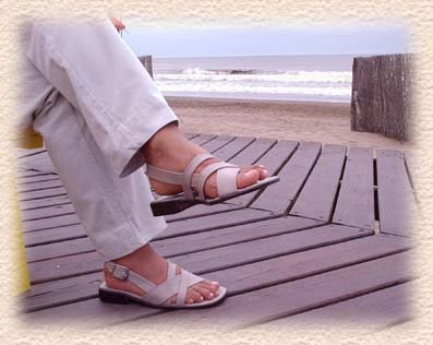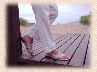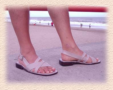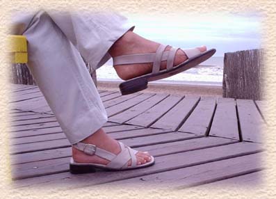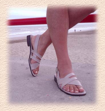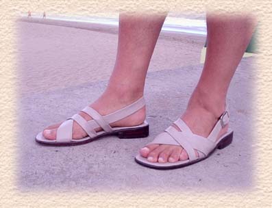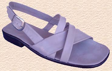Sandalia de novedoso diseño con tiras cruzadas alternadas de diferente ancho. Tiras y base en cuero del mismo tono. Suela y taco en color negro. Ajuste lateral con tira pasante y hebilla. Desde la suela hasta la capellada confeccionadas en cuero Argentino de primera calidad.