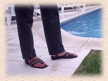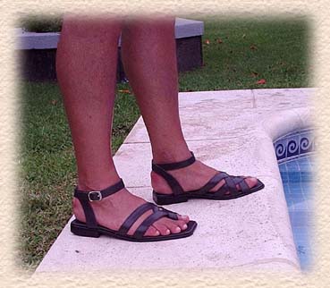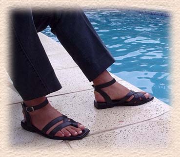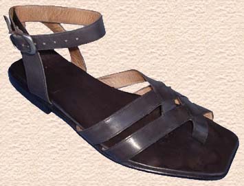 Sandalia ojota de tiras cruzadas de idéntico ancho. Calce cómodo y ajuste perfecto al pie con sujeción por tira "lazo" alrededor del tobillo. Otra versión elegante de sandalia/ojota que queda muy bien para usar con pantalones largos y de vestir. (Modelo de la foto con tiras y plantilla en cuero gris). Hecha íntegramente en cuero Argentino de primera calidad.